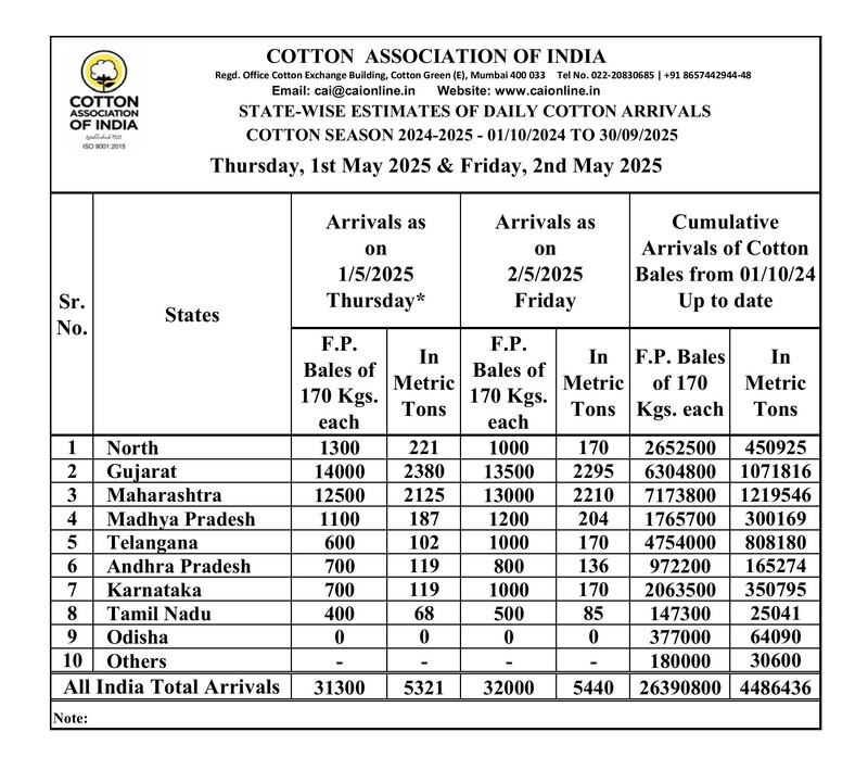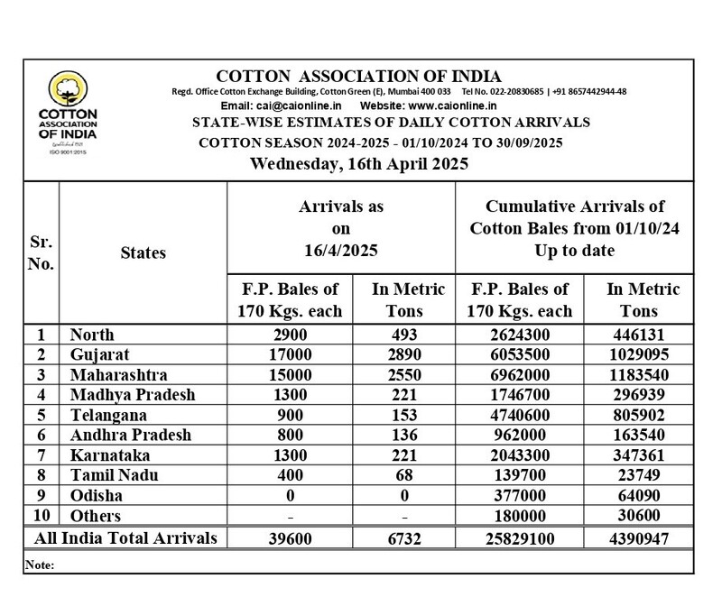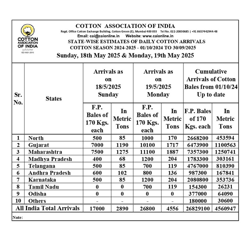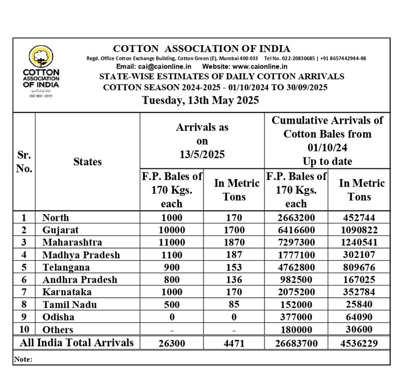 | COTTON ASSOCIATON OF INDIA | |||||||